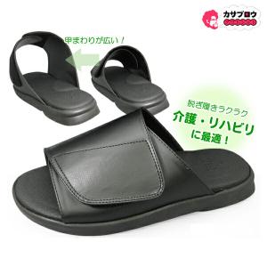 シニア 高齢者用 靴 ギブス用 けが人用 黒 ブラック リハビリシューズ 介護用 サンダル 紳士 メンズ Foot Form