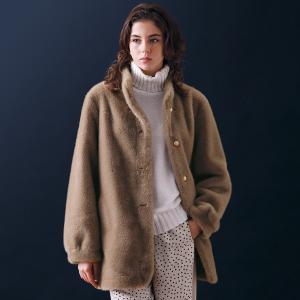 ジャケット アウター レディース ファー エコファー あったか エレガント ミセス シニア ファッション 40代 50代 60代 70代 ソフトタッチエコファージャケット