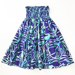 パウスカート67cm 72cm 77cm ハイビスカス&モンステラ総柄 ネイビー&シーグリーン 送料無料 ハワイアンフラダンス シダ