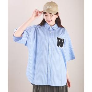 シャツ ワッペン刺繍 ルーズサイズシャツ ストライプシャツ メンズ レディース