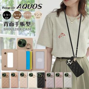 ミラー付き 4つ穴ショルダー AQUOS sense9 wish4 wish3 スマホショルダー ストラップ付き AQUOS sense8 SH-54D R8 R9 Pro スマホケース カード収納 肩掛け AQUOS