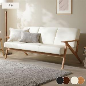木肘 合皮 ソファ 3人掛け クリームアイボリー ナチュラル脚 天然木 合成皮革 脚付き 肘付 ソファー リビング ダイニング インテリア家具