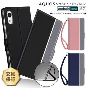 AQUOS sense3 / sense3 lite / sense3 basic / Android One S7 [ SH-02M / SHV45 / SH-RM12 ] シンプル 手帳型 レザーケース 手帳ケース 無地 ストラップ付き