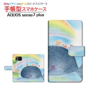 カメラ穴対応 手帳型 AQUOS sense7 plus ケース アクオス センスセブン プラス カバー A208SH スマホケース くじらと虹 やの ともこ デザイン
