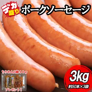 ソーセージ ポークソーセージ ウインナー 3kg (約50本入×3袋) 冷凍便 ブラジル産 粗挽き スモーク 業務用 大容量 飲食店愛用 特典付き