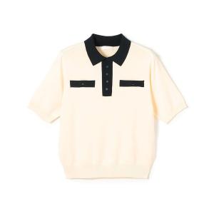 ニット セーター ストレッチタックドット ポロプルオーバー レディース