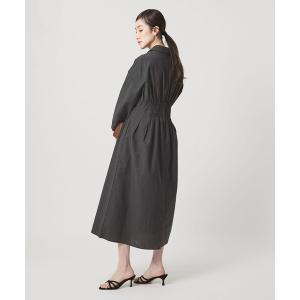 ふくろうと月 淡墨ピンタックのワンピース レディース ロング フレア Aライン 7分袖 七分袖 パフスリーブ 綿 コットン