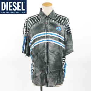 ◎ディーゼル(DIESEL)メンズ 訳あり カジュアルシャツ 半袖 グリーン系 デニム風プリント柄 イタリア製 (サイズ/46)*dm0064