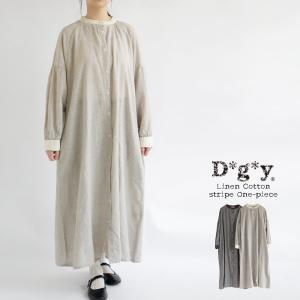 【送料無料】 D*g*y コットンリネン ストライプ ワンピース 春 夏 秋 冬 ロング丈 バンドカラー スリット dgy デコカンパニー ディージーワイ 88-D9060