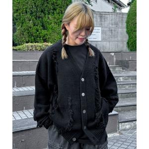 カーディガン A'GEM/9 × .kom「FREEDEE/フリーディー」ダメージ加工ニットカーディガン メンズ レディース