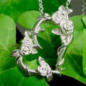 薔薇に包まれたハートのシルバーネックレスローズ シルバー プレゼント