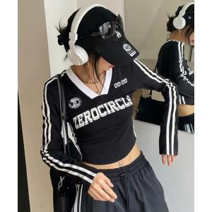 tシャツ ユニフォーム ゲームシャツ ロンT 長袖 ショート丈 袖ライン スポーツTシャツ レディース