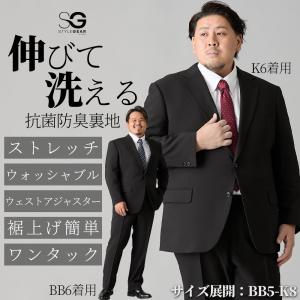 スーツ 抗菌防臭裏地 裾上げアジャスター付 洗える 4WAYストレッチスーツ シングル2つボタン + ワンタックパンツ 大きいサイズ メンズ ニッセン