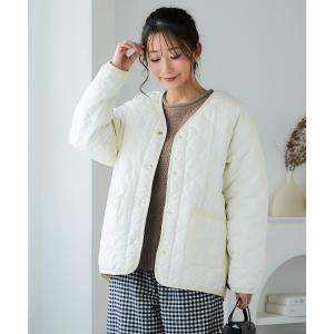 ノーカラーコート コート 「大きいサイズ」裏ボアキルトコート レディース