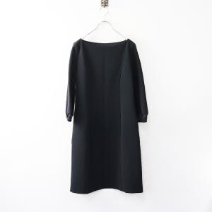 フォクシー ニューヨーク FOXEY NEWYORK ストレッチ アールデコワンピース シアー袖口 38 ブラック┃ベーシックドレス【2400014608885】