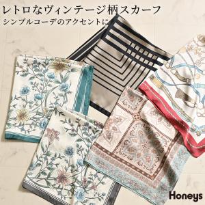 スカーフ サテン チェーン柄 エスニック柄 花柄 アート柄 総柄 巻物 光沢 フェミニン オールシーズン レディース Honeys ハニーズ スカーフ