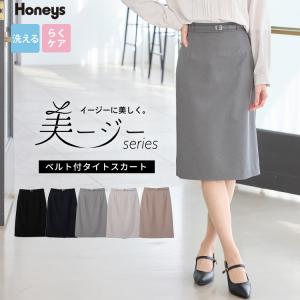 ボトムス スカート タイトスカート ひざ丈 セットアップ セレモニー 大きいサイズ オフィス きれいめ レディース Honeys ハニーズ ベルト付タイトスカート