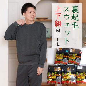 メンズ 裏起毛 スウェット 上下組 秋冬用 ルームウェア パジャマ 防寒 部屋着 裏起毛トレーナーと裏起毛スウェットパンツのセット