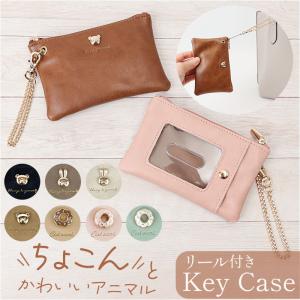 パスケース リール付き 小銭入れ レディース 動物 アニマル キャラクター 定期入れ コインケース キーケース付き小銭入れ キーチェーン 薄い おしゃれ かわいい