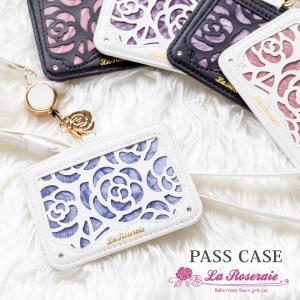パスケース リール付き IDカードホルダー 定期入れ 社員証 かわいい おしゃれ レディース バラ LaRoseraie IDカードホルダー