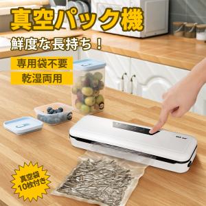 真空パック機 真空シーラー 真空袋10枚付き! ギフト シーラー 乾湿対応 多機能 乾燥物 汁物 自動脱気 停止 シール 真空シール キャニスター機能 卓上