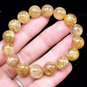 【商品動画ある】PROME 天然石【一点物】厳選グレード・宝石質・高品質・タイチンルチル・ゴールデンルチルクォーツ・ブラジル産・ブレスレット・v74639