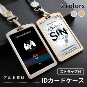 質感 アルミ素材カードホルダー ネックストラップ付き IDカードケース 社員証ストラップ 取付簡単 名刺入れ 定期入れ 男女兼用 軽量 おしゃれ