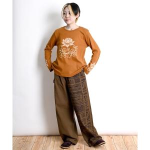 パンツ サイドエスニック柄 ワイドストレートパンツ レディース メンズ