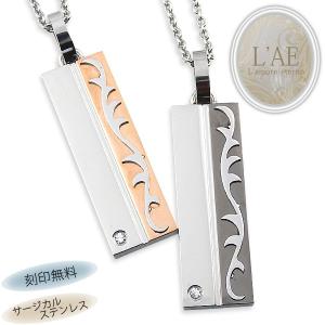 ペアネックレス 刻印無料 ステンレス ネックレス ペア プレート サージカルステンレス ピンク ローズゴールド ブラック アラベスク ペアアクセサリー 名入れ
