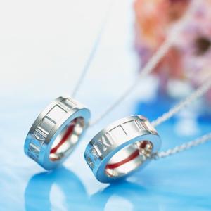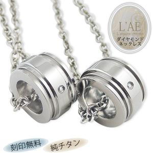 ペアネックレス 刻印無料 リング型 チタンネックレス レーザー刻印 ダイヤモンド 純チタン ネックレス ペア チタン ペアアクセサリー 名入れ チタンチェーン付き