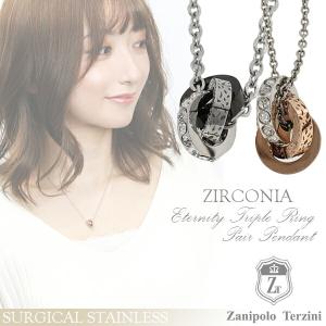 ザニポロタルツィーニ サージカルステンレス エタニティ 3連 リング ペアネックレス 金属アレルギーフリー ステンレスアクセサリー プレゼント