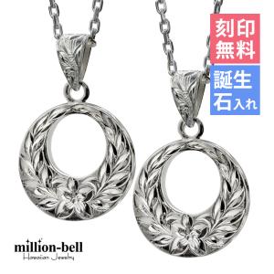 ハワイアンジュエリー ペアネックレス 刻印無料 誕生石入れ可 2個セット シルバー925 マイレリーフ ラウンド ハワジュ 40代 50代 30代 20代