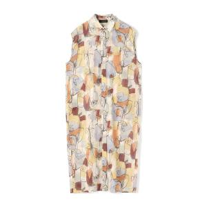 シャツワンピース オイルペイントプリント ギャザースリーブワンピース