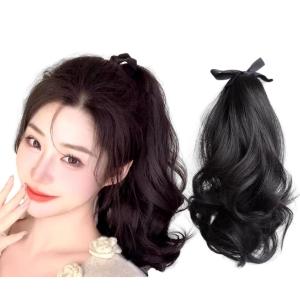 ポニーテールウィッグ エクステ コーム付き ツインテール 簡単 ウィッグ カール 巻き髪 つけ毛 エクステンション (ブラック) かわいい かっこいい