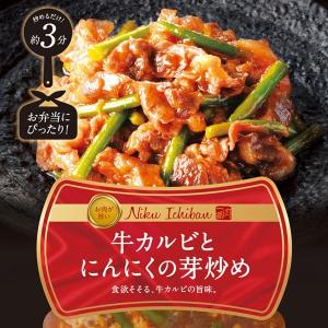 肉一番 牛カルビとにんにくの芽炒め185g×8食 甘辛いタレでアクセントに黒胡椒と唐辛子を使用 【 ミールキット 牛肉 カルビ 丼 焼きそば 時短 グルメ BBQ 】
