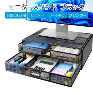 2段モニタースタンド 引き出し付き ブラック HUANUO 2 Tier Monitor Stand Metal Monitor Riser with Drawer Black モニター台 パソコン台 デスク広々