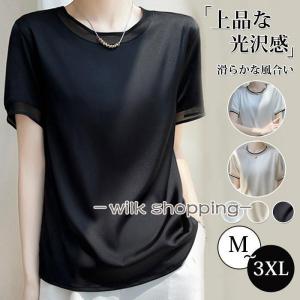サテンブラウス レディース ブラウス ゆったり 夏 トップス 接触冷感 シルクタッチ ママ