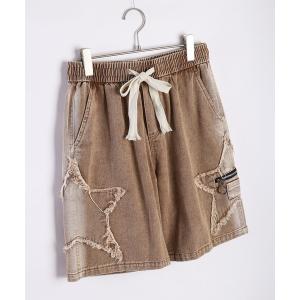 ジーンズ デニム サイドブラスト加工 スターデザイン 5分丈 カーゴショーツ メンズ レディース