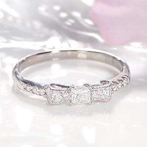 pt900 プラチナ 指輪 リング ダイヤモンド ダイヤ 角ダイヤ 0.17ct H-SIクラス リボン CAR-0128