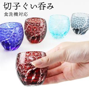 切子 グラスぐい呑み(お猪口) (コバルト(紺)・赤・レイクブルー・インクブルー) 食洗機対応 (切子硝子 切子ガラス カットグラス)