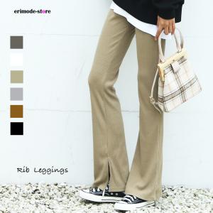 リブパンツ フレアリブパンツ 前スリットパンツ レギンス レギンスパンツ フレアレギンス フレアパンツ リブレギンス レディース 162604