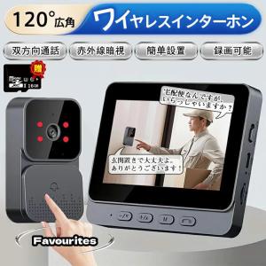 【SDカード16GB付き】インターホン ワイヤレス 無線 工事不要 4.3インチ大画面 120°広角 自動録画 防犯カメラ 機能付き 屋外 WIFI不要 双方向通話 インターホン