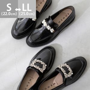 ローファー レディース ローヒール 厚底 痛くない ラウンドトゥ ビジュー パール モチーフ 送料無料 11/20 9:59マデ 2,999円