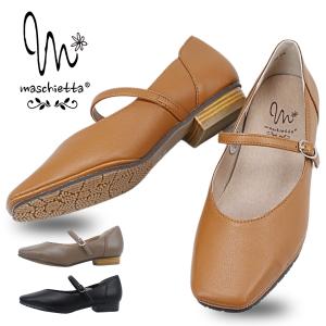 マスチェッタ ローヒール レディース スクエアトゥ ストラップ パンプス 3Eワイズ 幅広 靴 7409