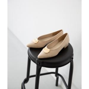 パンプス ポインテッドトゥ メタルモチーフ ローヒール パンプス