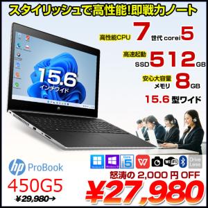 【中古パソコン】HP PROBOOK 450G5 中古 ノート Office OS [Core i5 7200U 8GB 512GB 無線 テンキー カメラ Type-C 15.6型] :良品
