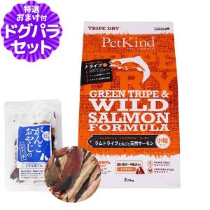ペットカインド トライプドライ グリーントライプ&ワイルドサーモン 小粒 2.72kg+国産鹿肉ジャーキー(お試しサイズ)