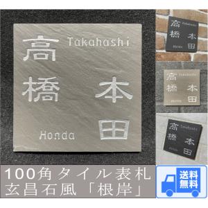 二世帯住宅用デザイン多数 タイル表札 石感のあるおしゃれ表札 100角玄昌石風表札「根岸」 小さい 戸建て マンション用 追加マグネット可