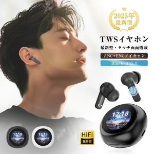 2025最新 完全ワイヤレスイヤホン Bluetooth5.4 タッチディスプレイ付き 1.28インチ カナル型 ENC ANC ノイズキャンセリング【PL保険加入済み製品・安心】