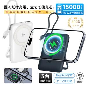 モバイルバッテリー 15000mAh 57.75Wh 防災電源 大容量 iPhone17 ケーブル不要 マグネット式 ワイヤレス充電器 MagSafe Qi認証済 【PL保険加入済み製品・安心】